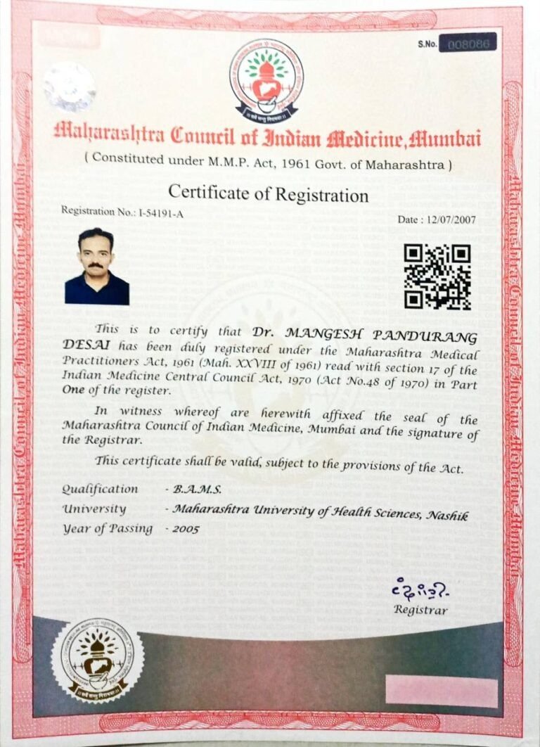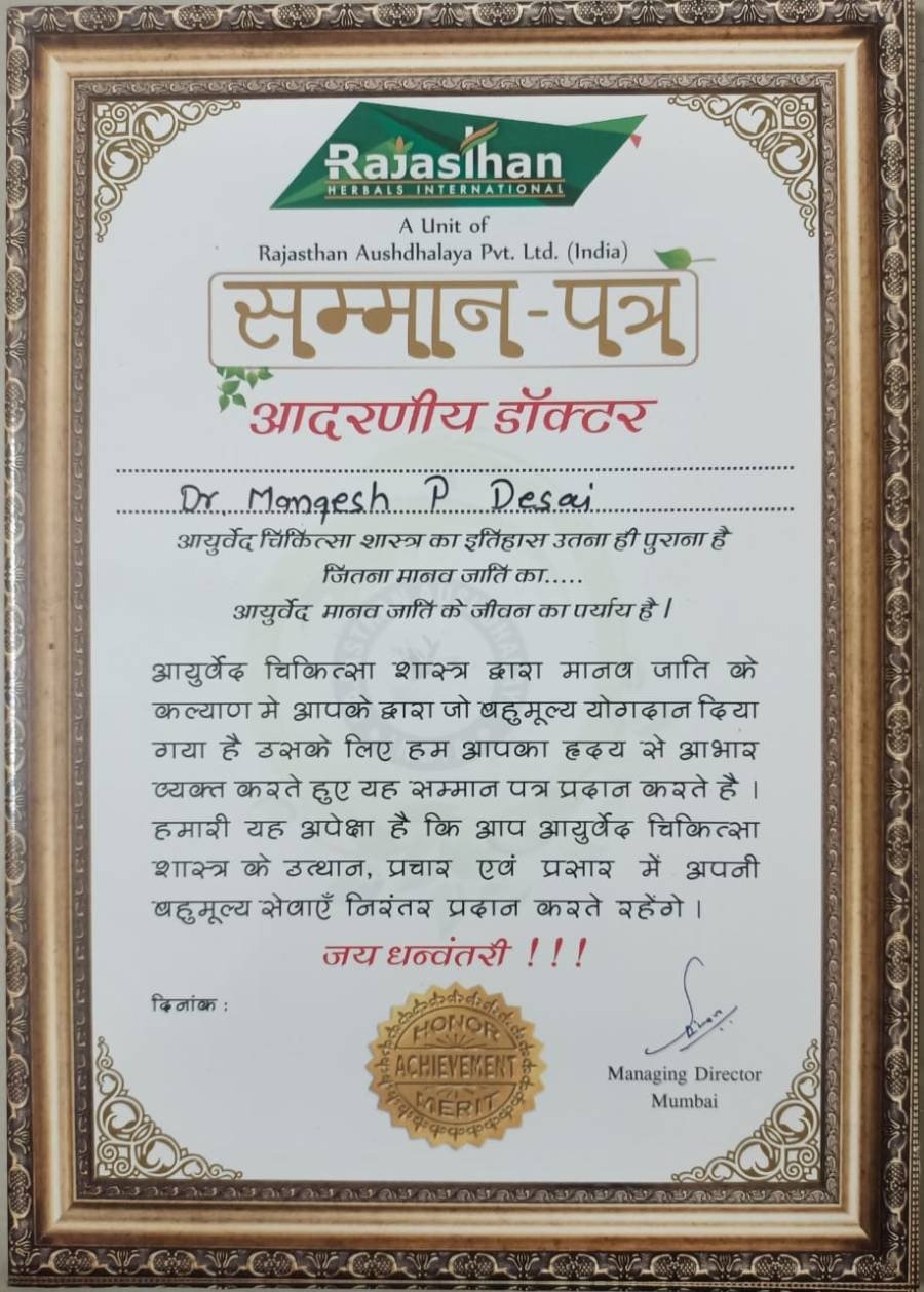 - Experience the Healing Power of Ayurveda: Whether you’re struggling with chronic health issues or simply seeking to enhance your overall well-being, Dr Mangesh P Desai invites you to experience the transformative power of Ayurveda. Book your consultation today and take the first step towards a healthier, happier life.